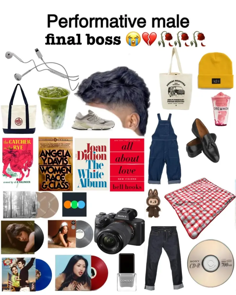 We also have the Performative Male. The aesthetics to have, have gone from the buffed Alpha male gym trainers to the tote bag carrying, matcha drinking nice guy. The performative man gives off an air that he’s in touch with his emotions. In a calculated display of sensitivity, he reads literature, in public, dressed in a cosy cardigan. The performative male even found space offline in competitions where hundreds judged a winner.